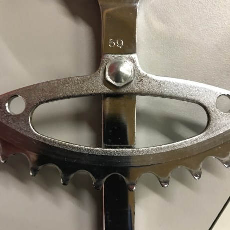 Crankset: Way-Assauto ‘Y’ format 50/47 (stamped 59 on inside of the arms)