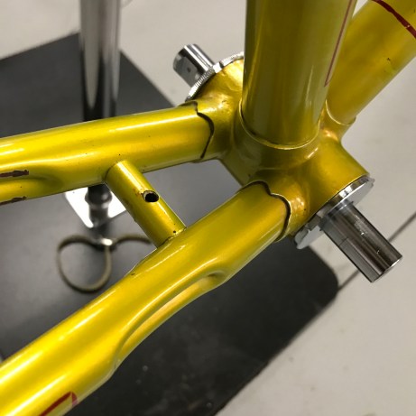 A quality shop that has been around for a while should have the proper tools for extracting the cotters from the crankset, as well as resetting them when the time comes to put the bike back together. I have seen too many frames and cranksets irreparably damaged by well-intentioned but hasty people swinging a hammer and hoping for the best. And don’t be shy, ask the mechanic if they have a cotter extractor in the shop and if they are comfortable doing the work or if they prefer to recommend a shop that has the experience and tools to work on vintage bikes.
