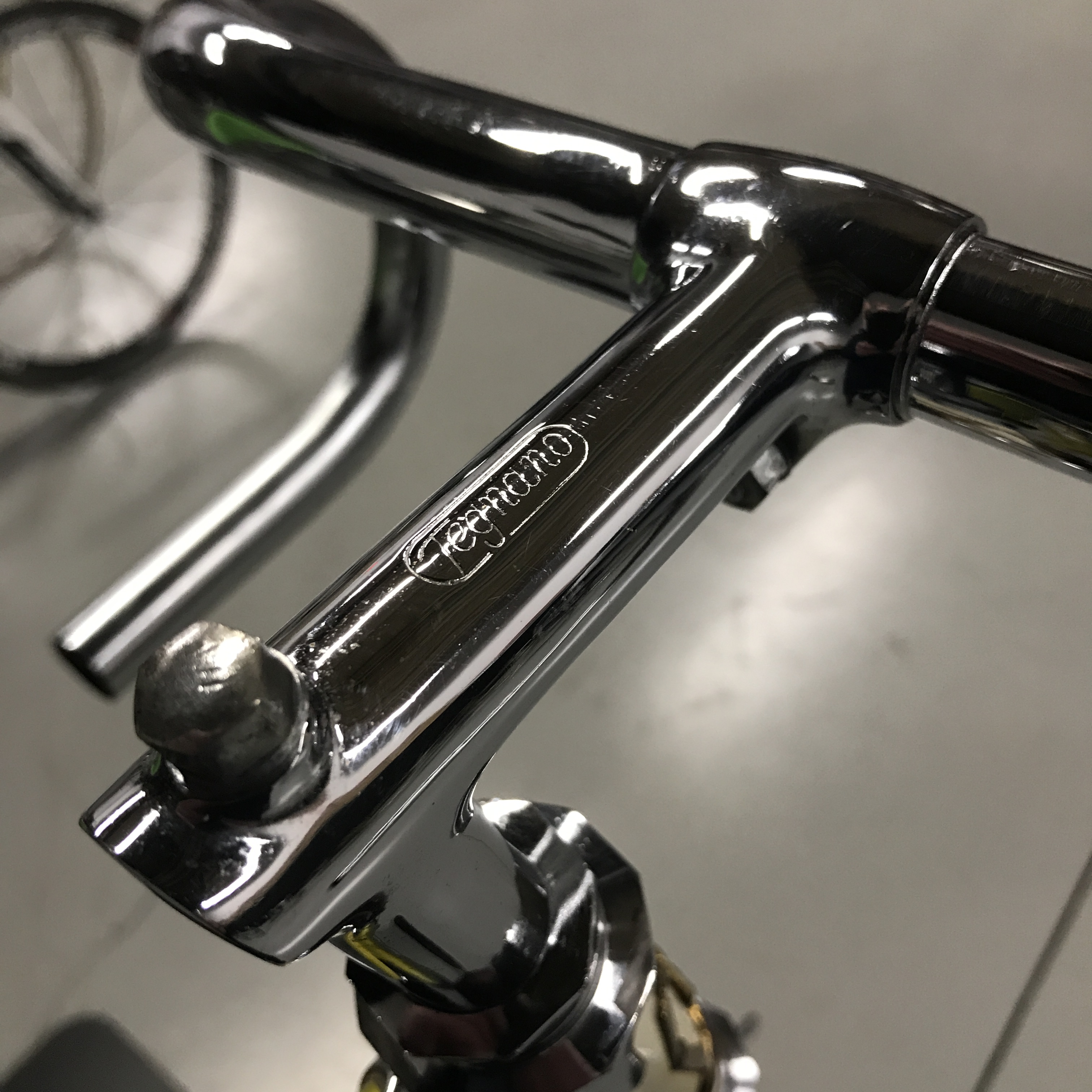 Cinelli steel stem and bars branded for Legnano. The oval Cinelli logo is stamped on the underside of the neck.