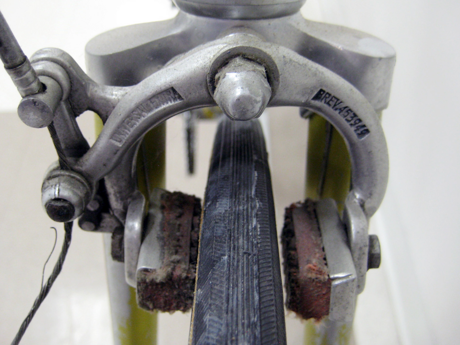 This Gran Premio was fitted with Universal Model 51 (Brev. 453949) side pull brakes as opposed to the Model 61 center pull brakes that came to market in 1961. Both models were a common spec on the Gran Premio models at this time. Despite the growing popularity of center pull brakes among competitors, particularly the Mafac Racer (1952), the Universal Model 51 side pull was preferred by many riders through much of the 60’s until Campagnolo introduced their Record brakeset in 1967.