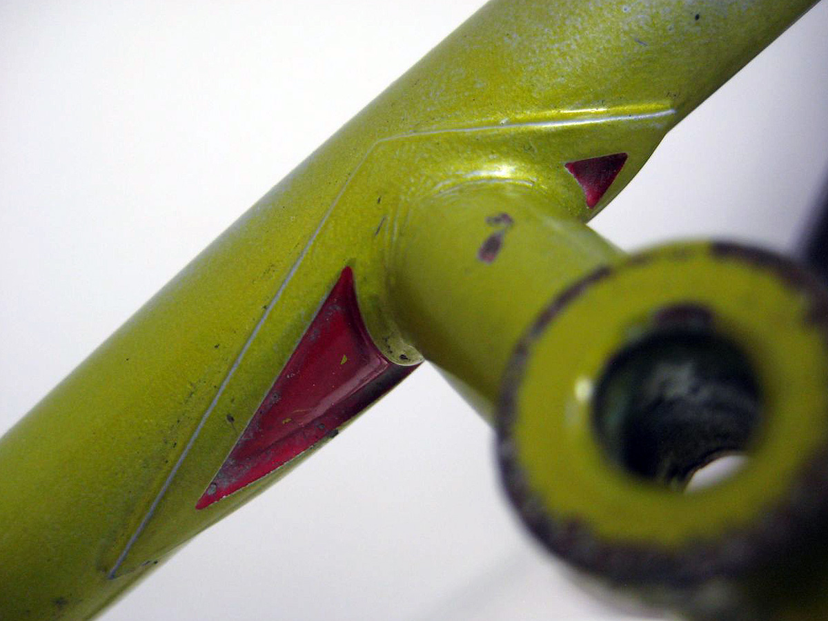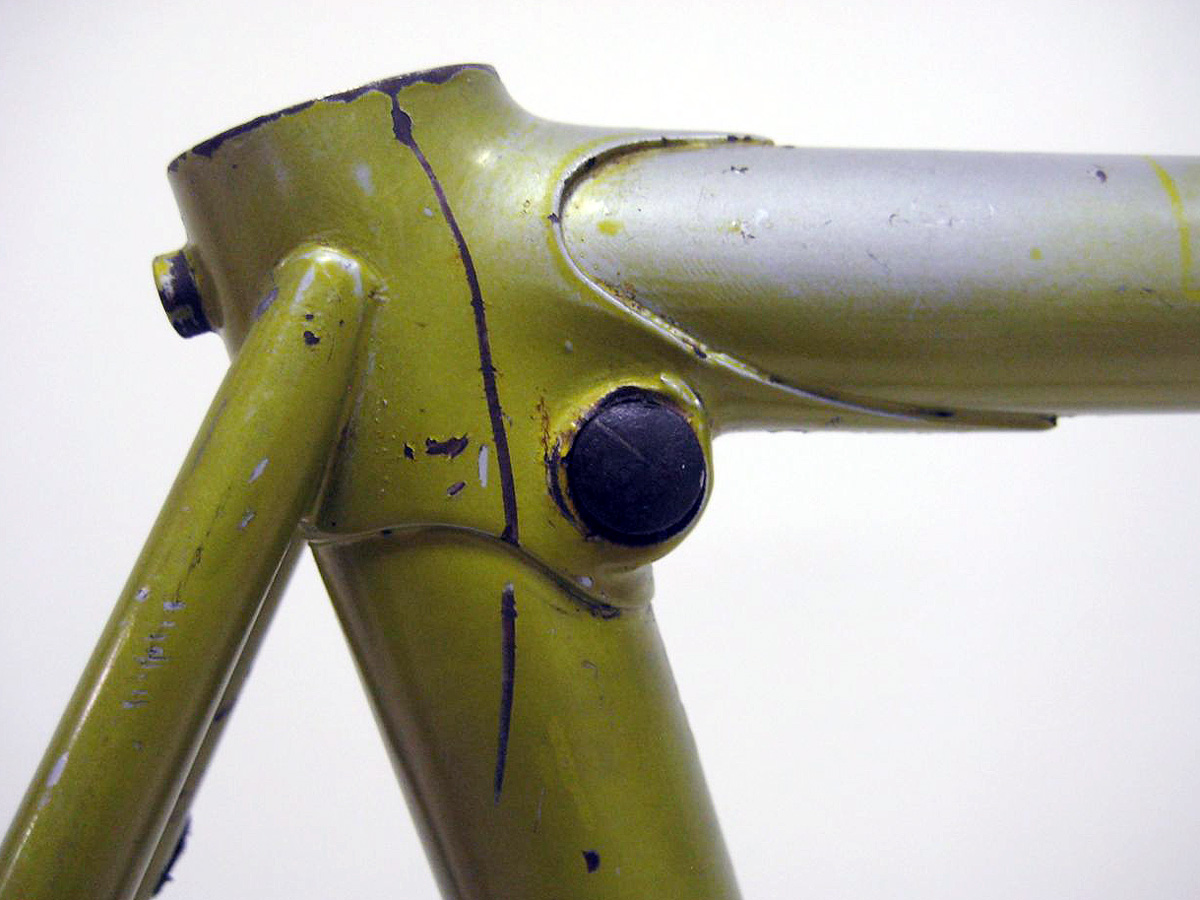 In the photo above you can see the faint remnants of a triangular-shaped Reynolds 531 tubing decal on the top of the forks. Legnano started to build some frames with Reynolds 531 tubing starting in the late 60’s and I understand that Emilio Bozzi had the Reynolds distribution rights for Italy.
