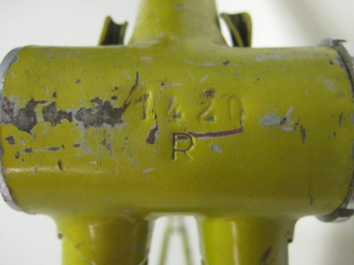 My research has led me to conclude that the ‘R’ below the serial number on the underside of the bottom bracket is in reference to the Reynolds 531 frame construction. Having said that, the traditional Legnano alphanumeric serial numbers on the seat lug came to end in 1966