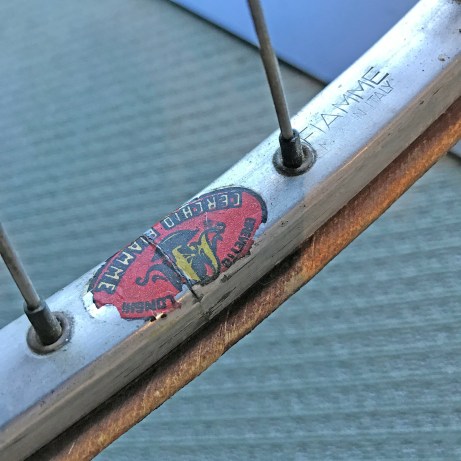 This Frejus was sporting some 70s Japanese hubs and rims in the sales photos along with the original factory wheels with Campagnolo Record high flange hubs and Fiamme tubular rims. Based on the lack of rim wear, the original owner must have made the switch not long after first buying the bike as like many non-competitive riders they did not like the relatively high cost at that time of tubular tires and the glue mount process that was not familiar to them. Usually the original tubular wheels are long since gone in a swap meet or garage sale, so it was a real bonus that they had been kept with this bike and they are in such good condition they will not need to be rebuilt.