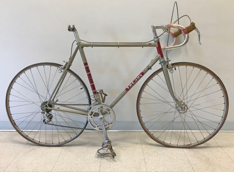 Frejus is one of the big historic Italian brands that was founded by Emmo Gelfi in 1896 and acquired by Emilio Bozzi S.p.A. in 1946, joining the Legnano and Wolsit brands and production. The Professional ‘Corsa Speciale” Campione del Mondo was the top road model for Frejus having won 11 World Championships and counting by 1958. This 1972 bike in the classic team colours and original factory finish was just purchased (September 2017) from its original owner via Yellow Jersey Inc, a bike shop that has been operating in Arlington, Wisconsin since 1971.