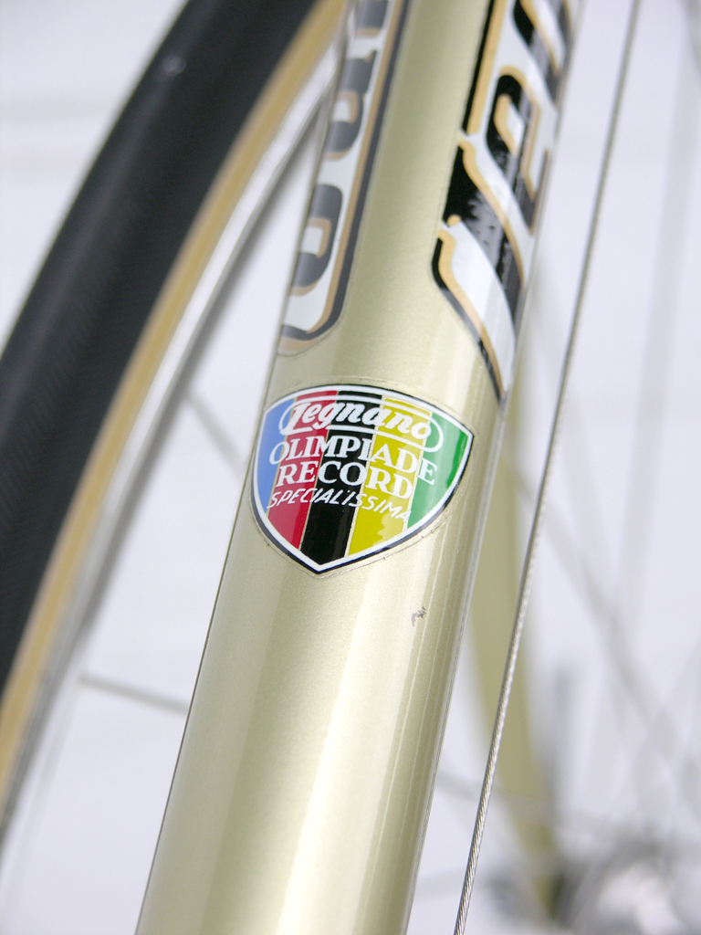 This 1978 Roma Olimpiade ‘Specialissima’ is not in my personal collection, it was listed for sale by Eisenherz Bikes of Düsseldorf, Germany in November, 2014.  It is quite amazing that this bike is in NOS condition having survived quietly in a storage for 38 years at the time of writing.  It is a beautiful example of the Legnano frames that were built from Reynolds 531 tubing from the early 70s through the early 80s and highly sought after by some collectors.  Enjoy!