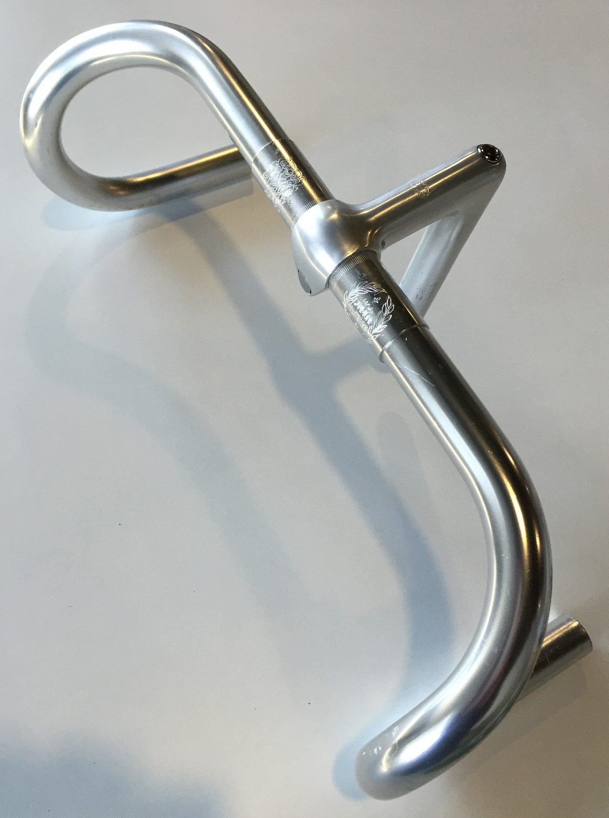 The Cinelli 1A stem and Giro bars were recently re-introduced however the ones I am using are the original issue that are getting more and more difficult to find in good condition, let alone the price. The bars often tend to be badly marked as the corresponding opening in the Cinelli stem needs to be opened a little (wood wedge) to insert or remove the bars without scratching the beautiful engravings. Regrettably most people either don’t know this mounting technique or don’t take the time and the bars are permanently damaged.