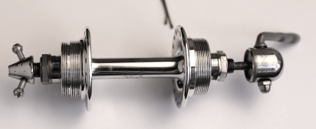 I have a nice 1953 Campagnolo hub that has 1952 / 1953 dated internals and silver (steel coloured) locknuts – these soon became black. If I see a bulb ended Gran Sport hub with silver locknuts I can be reasonably comfortable it is Campagnolo, not FB and 1953 – but of course hardware can be inter-changed.