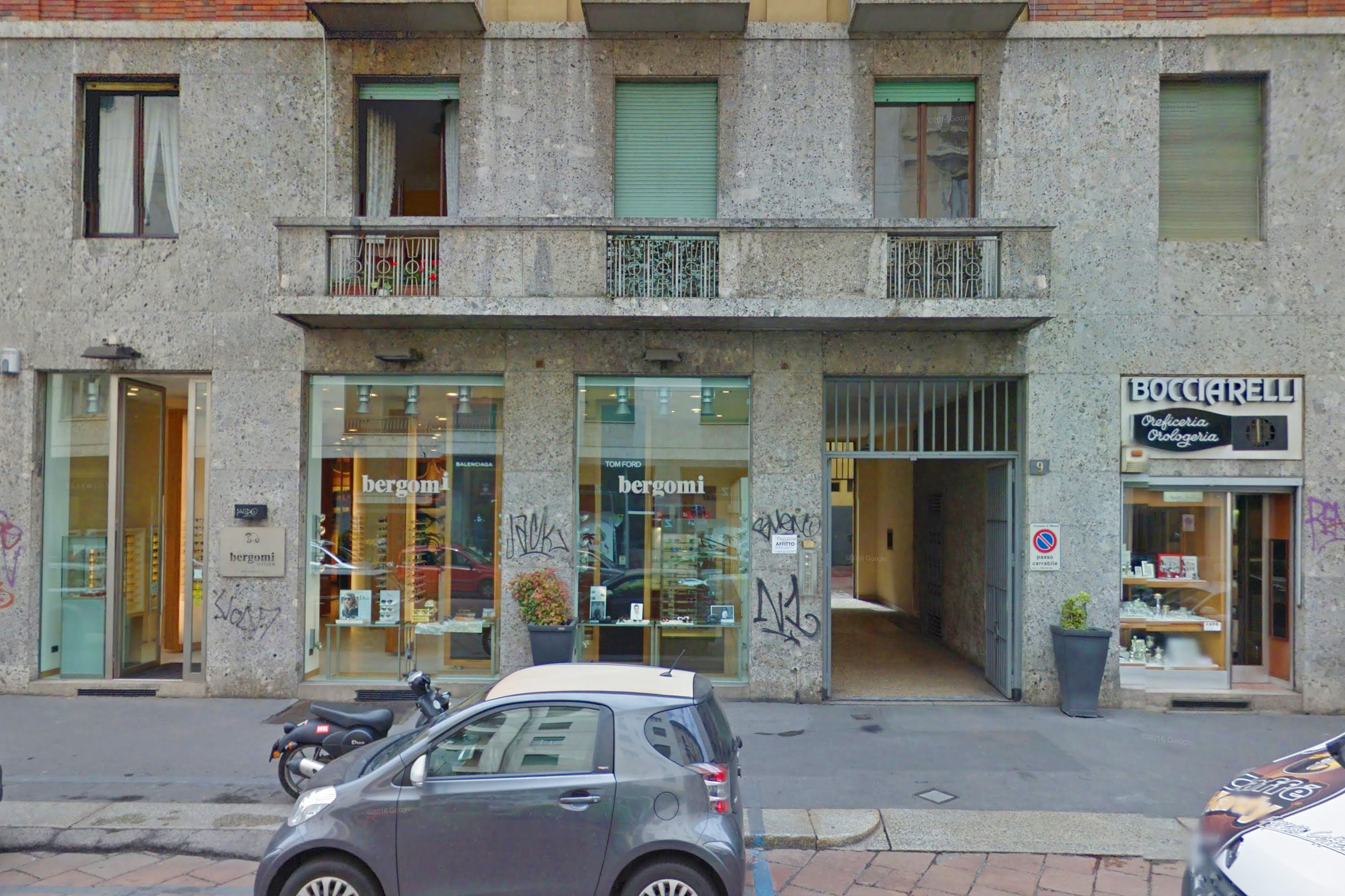 In addition, here is a current day photo below of 9 Corso Genova, the longstanding business office for Emilio Bozzi SpA. On the street level there is now a shop selling designer eye wear.