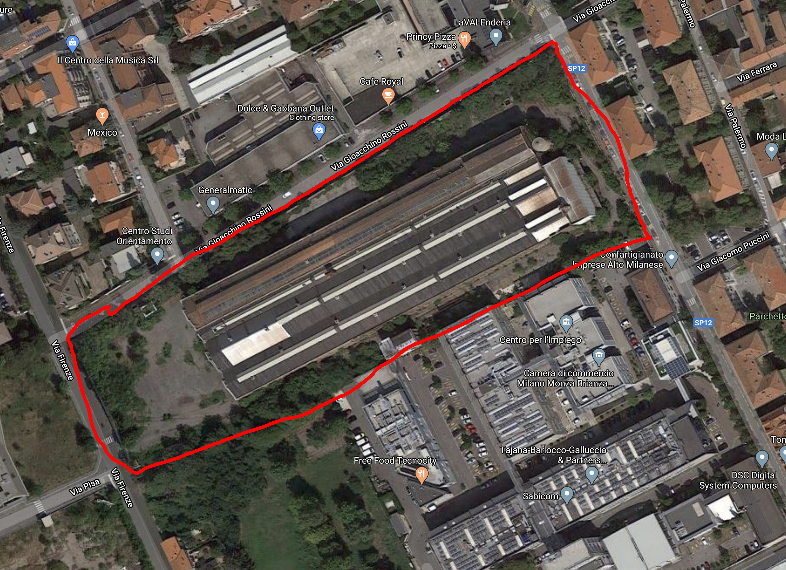 Below is an arial view and photo today of where the Wolsit factory of Franco Tosi stood (source and background article) looking along the Via XX Settembre from the Via Giacomo Puccini toward the Via Rossini. A small section of the original perimeter wall remains.