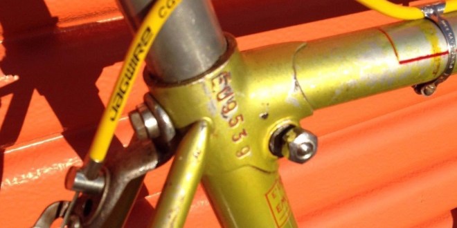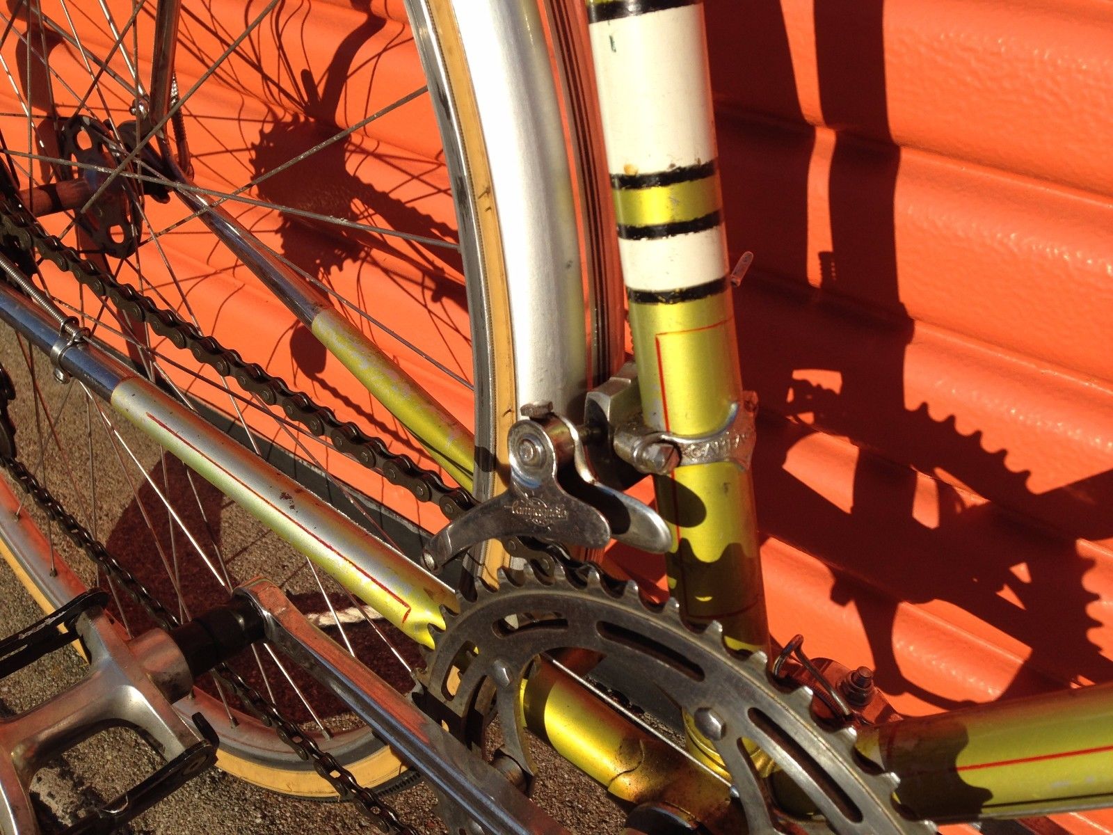 This Gran Premio is also fitted with the integrated pump ‘umbrella’ clip on the Campagnolo Record down tube shifters and matching cable guide/stop at the BB, a very nice detail for the period. The bike also appears to be fitted with clincher rims for tubes with Schrader valves. I am anticipating the rims will either be Ambrosio or Weinmann and possibly 27 inch rather than 700c, a format that Legnano sometimes used on the Gran Premio models without tubular tires for export to the USA. Here are a few more pics of the bike as I wait for it to arrive.