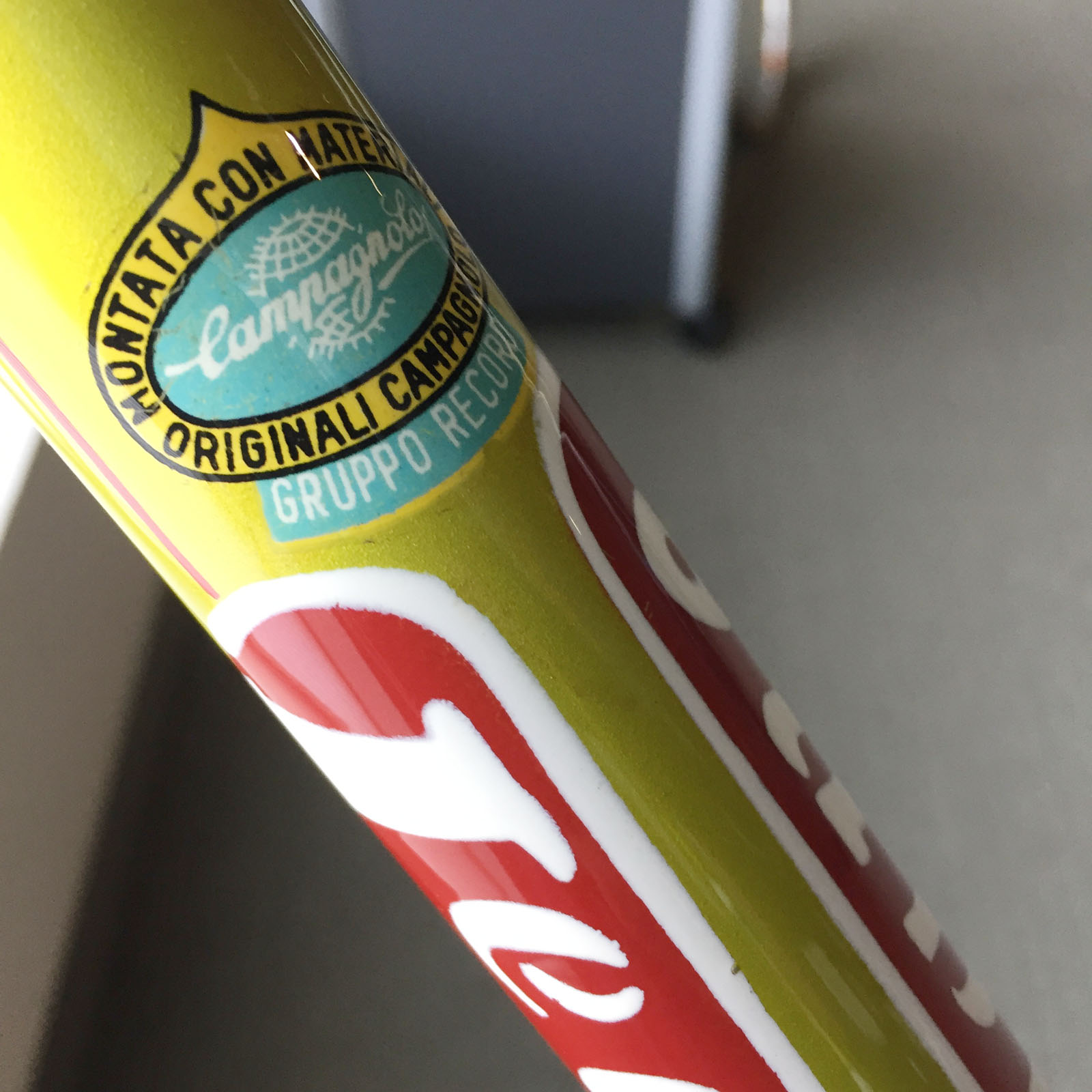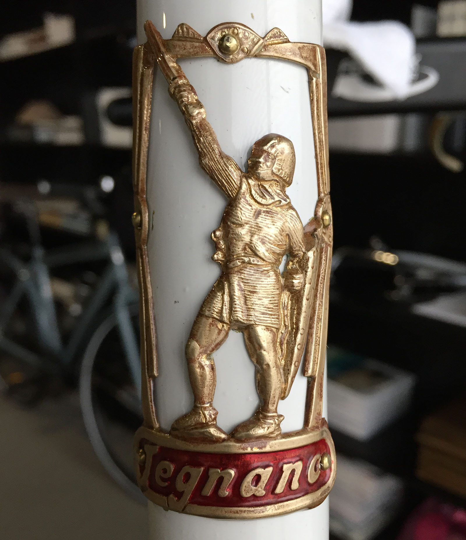 That’s nice work on the badge! I have two rough condition Roma Olymiades that I carefully cleaned, frame saver’d, used an artist’s brush and dabbed Extend on the rust patches, replaced bearings, brakes, and cables, plus bar tape and just stopped there. I think of it as a rat rod! There is a fellow in Italy selling original checked green and blue brake cable housing, if you didn’t know that.
