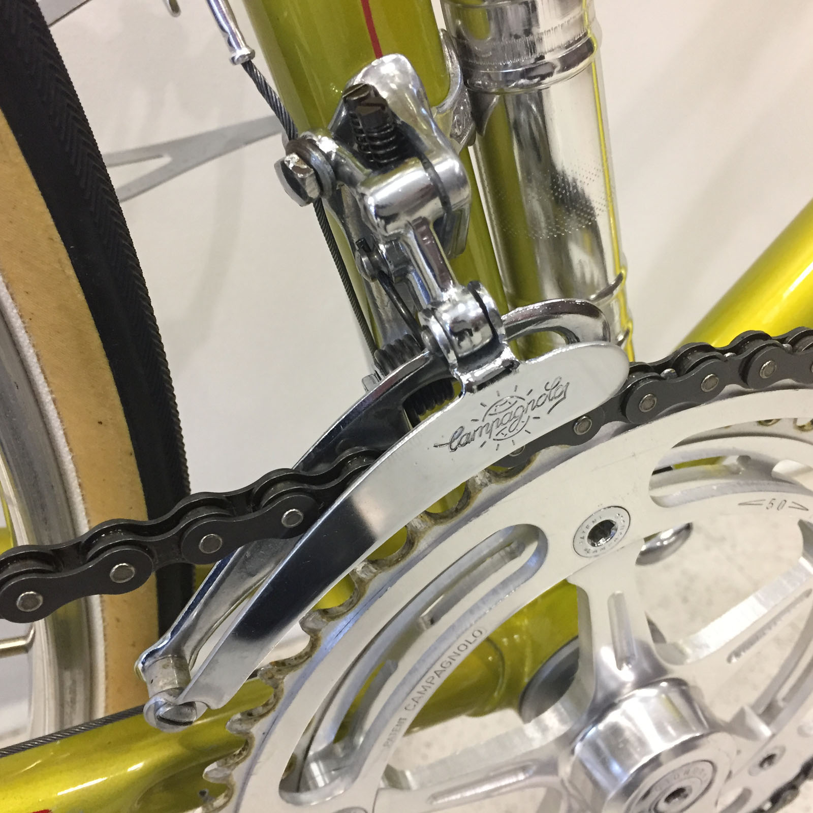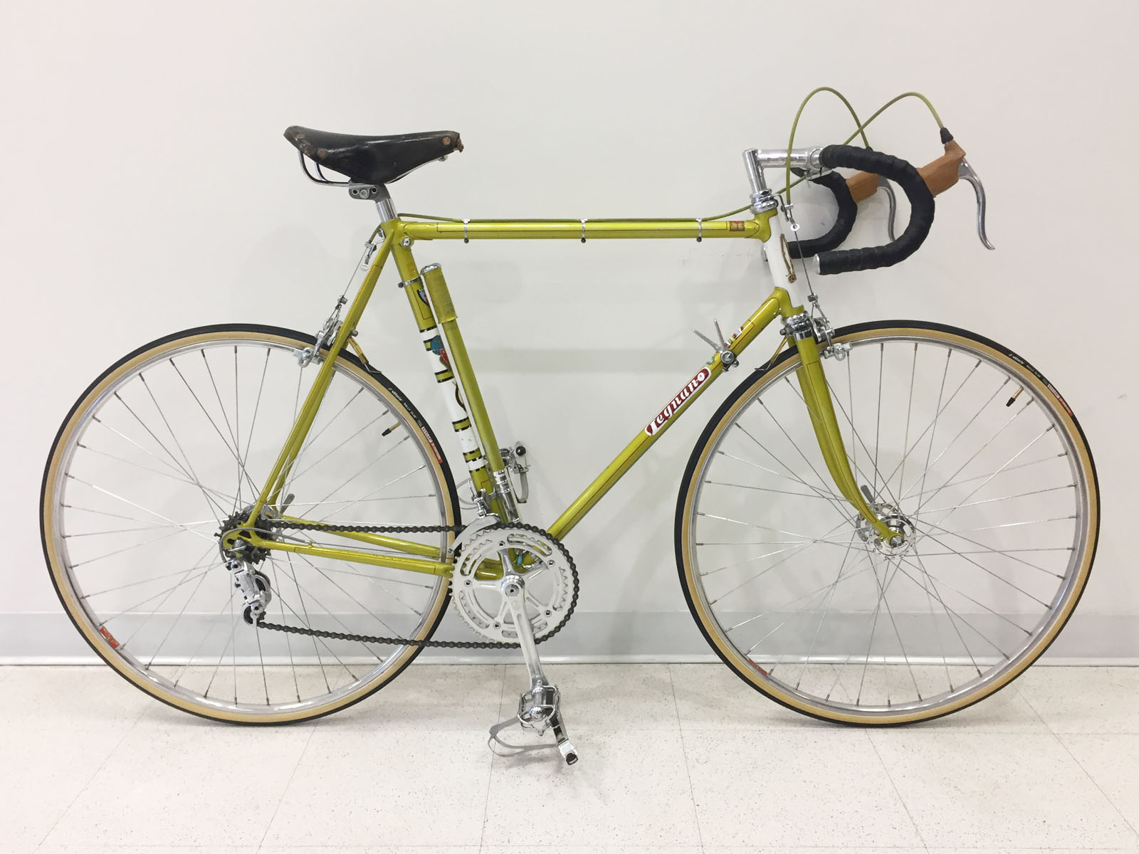 The original factory paint on this Roma was in great condition for a Legnano that is about to turn 50. After fully dismantling the bike, cleaning and polishing up all the bits and pieces and repacking all of the bearings, I decided to have Noah Rosen at Velocolour apply a light polyurethane clear coat to gently preserve the finish and decals before putting it all back together. Beyond that a couple of new cables were required, bar tape, brake hoods, toe straps and tires. Here are some photos of how it all turned out.