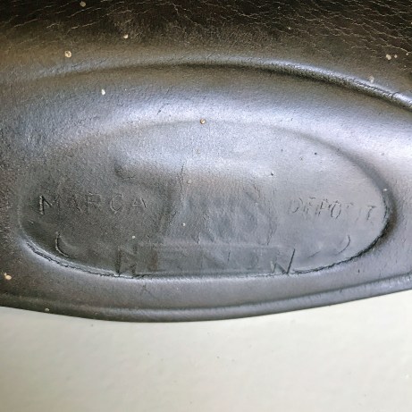Mr. Google hasn’t provided much in terms of FNI as a saddle maker aside from some loose references to the city of Bologna in Italy. What particularly intrigued me was the oval crest on the side flaps of the saddle. Although well worn, you can still make out the letters “Marca Deposit.” across the center portion of the oval and the letters “FNI” across the base. The center of the oval also features some sort of animal.