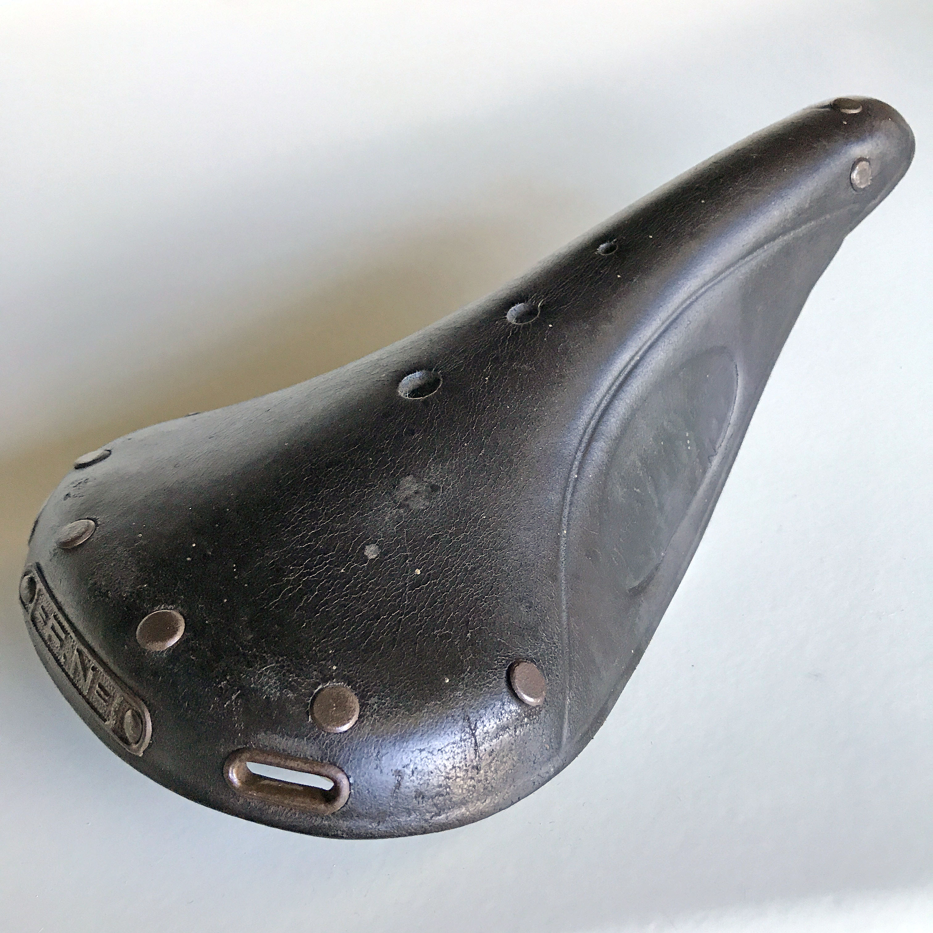 This old FNI saddle came fitted on the 1946 Legnano Tipo Roma that is in the collection. It was a brand unfamiliar to me and I have always been a little sceptical of its history, particularly if it is original to this 1946 Legnano, as Bozzi SpA was partial to Brooks on the top road models. However the details of this FN saddle definitely speak to the era as well as being very similar to the Brooks saddles of this time.