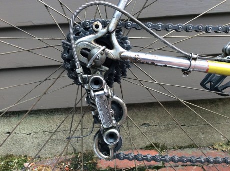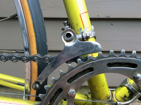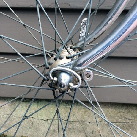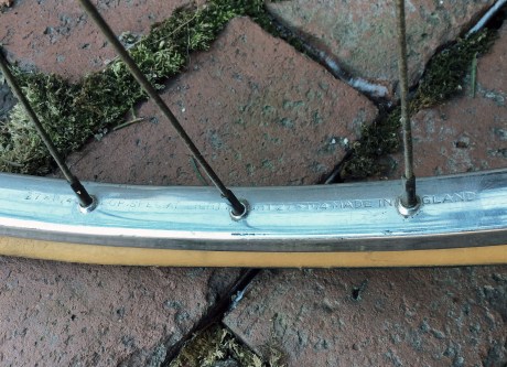 I suspect that the wheels were rebuilt either when the bike was first purchased or shortly thereafter given the limited popularity of tubular tires in America. Many non-competitive cyclists on this side of the Atlantic found tubular tires to be expensive, challenging to repair and generally not well suited to the mix of road conditions. I am a little on the fence as to whether to correct the wheels, leaning toward leaving things as they are at least for the time being.
