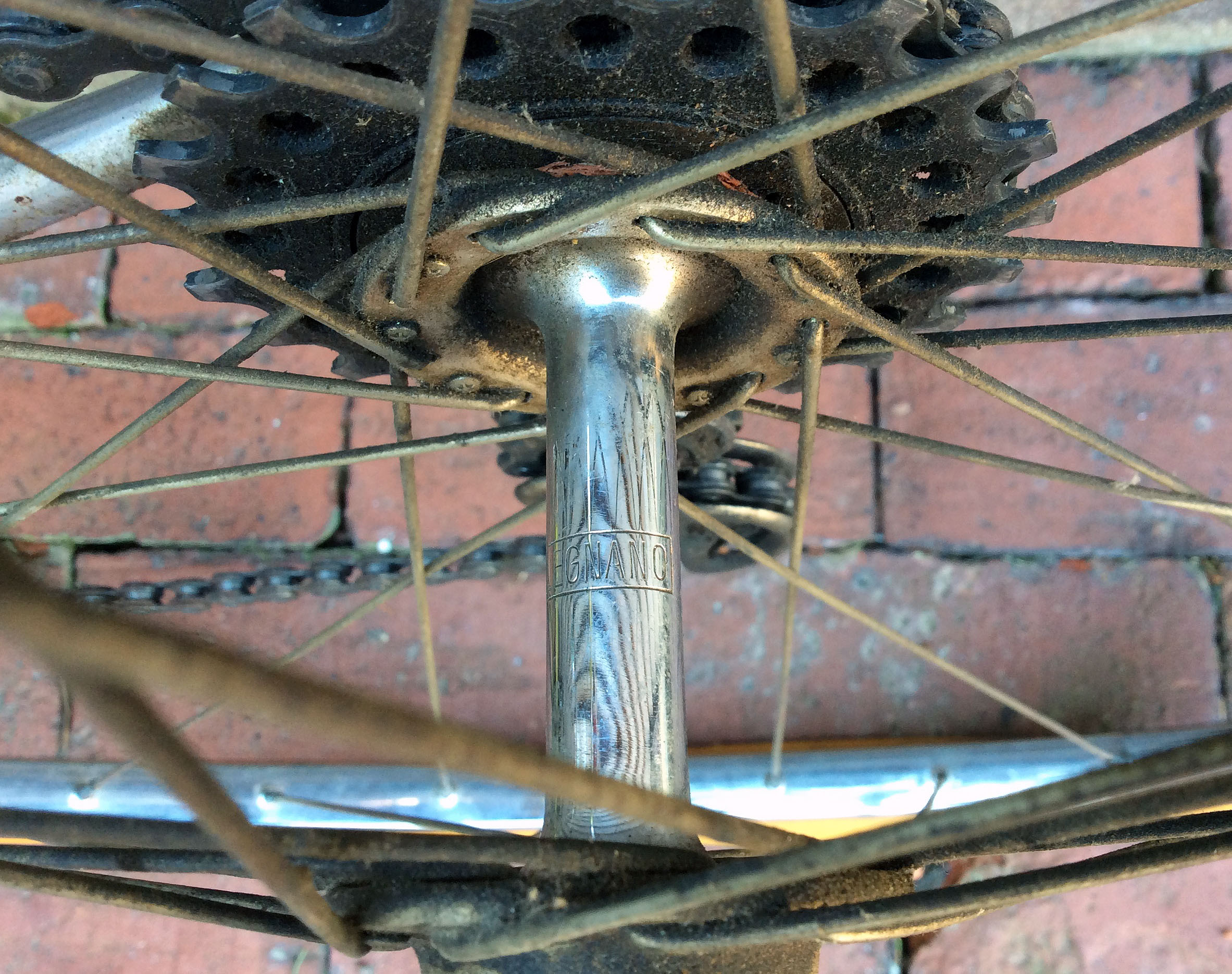 Speaking of where the bike was first purchased, there is no shop decal on the bike however I suspect this Roma was purchased from Tommy Avenia in NYC who was the first importer of Legnano road bikes to America based on my research to date.