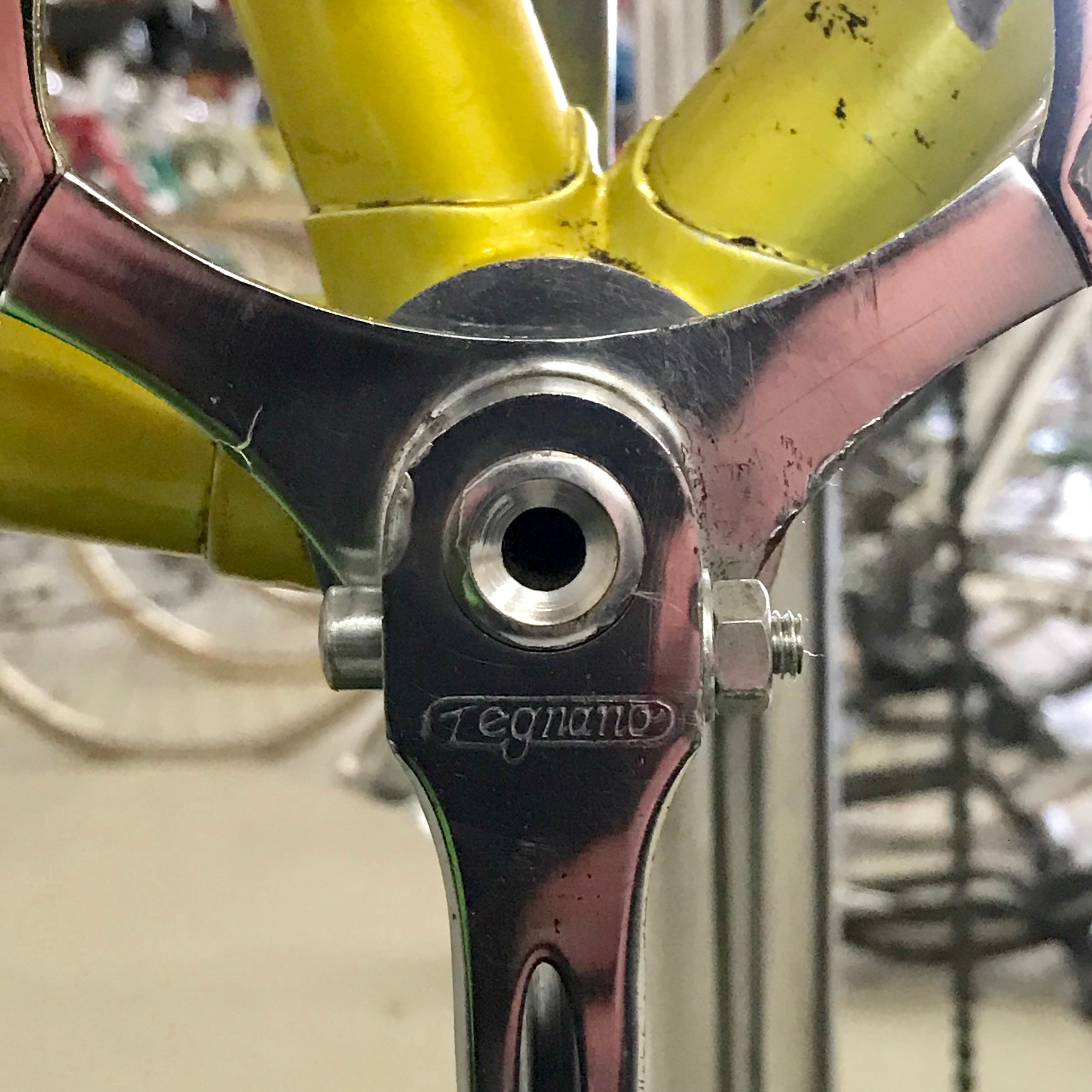 As you can see, this bike was ‘well loved’ over the years and the chrome crankset has cleaned up extremely well with no pitting or rusting. A few nicks here and there but very little for the 65 years that have passed. As with most cranks on the Roma and Gran Premio, they were produced by Way-Assauto (W.A.) and engraved for Legnano. This particular W.A. design that secured one of the main chainring prongs to the inside face of the crank arm was specific to Legnano to the best of my knowledge. Sometime referred to as the ‘Y’ design it was around in the 50’s but seems to have stopped production by 1960-61.