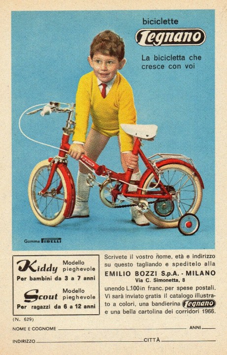 Advertisement circa.1966 courtesy of Armando from Italy. Note the condorino style handlebars. The address in the advertisement was the ‘sede’ or legal office of Emilio Bozzi S.p.A. in Milano.  It now houses a seafood restaurant, Zio Pesce.